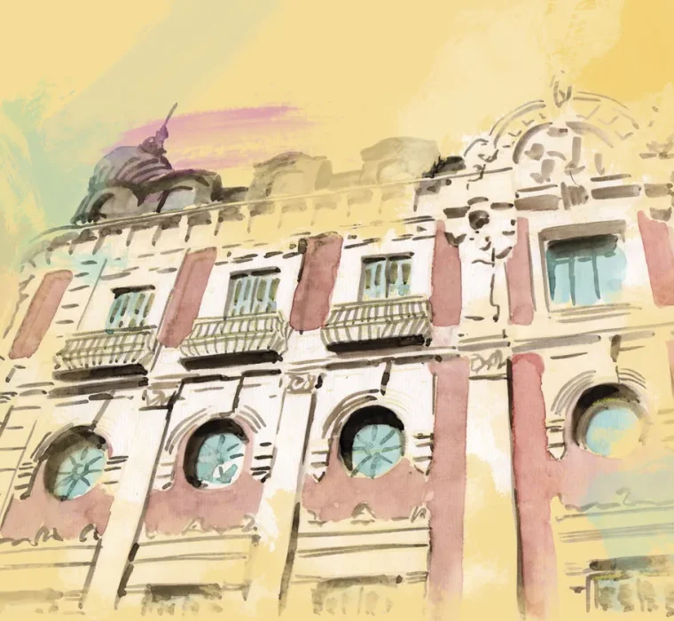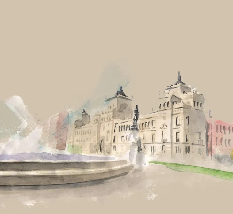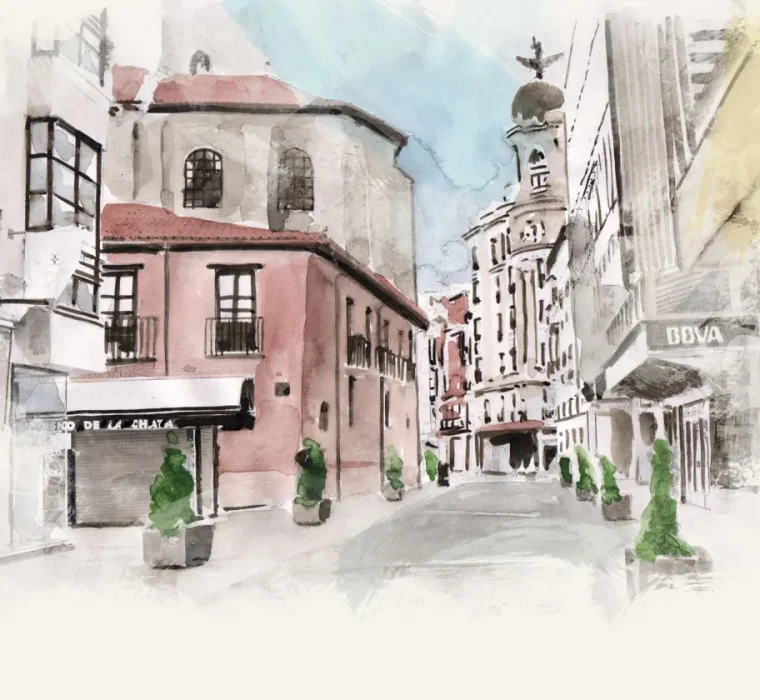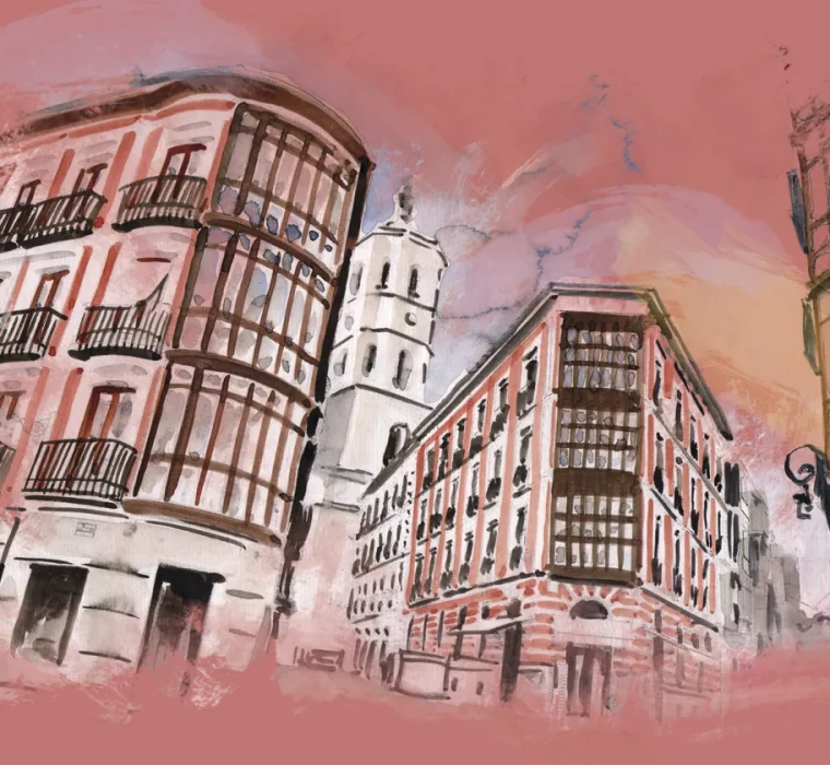 acuarelas entornos urbanos Ilustraciones en acuarela, posteriormente retocadas digitalmente. Colección de acuarelas de calles, plazas y edificaciones de Valladolid. Client: SEMANA INTERNACIONAL DE CINE DE VALLADOLID Services: CARTEL 67 SEMINCI